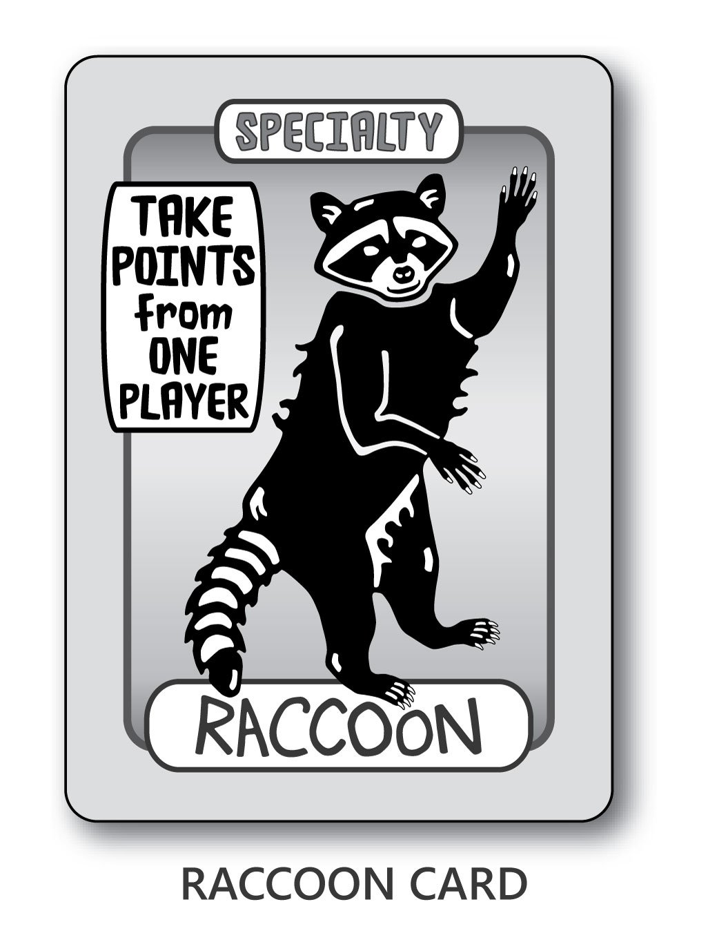 The RACCOON card – Has you take a POINTS card from any one player (if they have one).