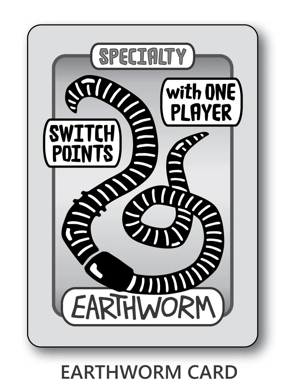 The EARTHWORM card – Has you switch one of your POINTS cards with another player’s POINTS cards