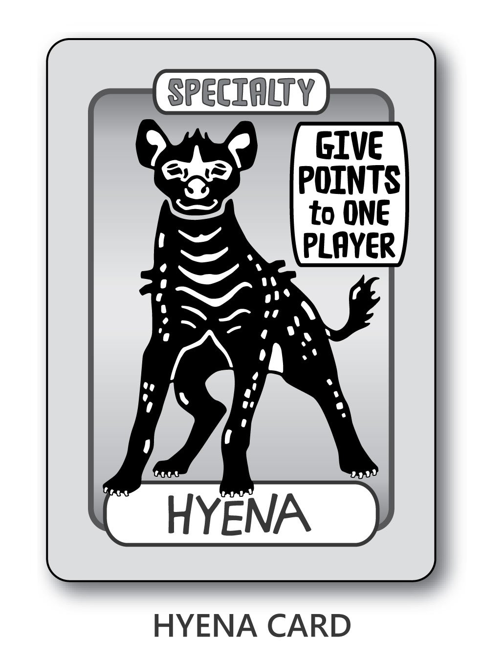 The HYENA card – Has you give one of your POINTS cards to any one player (if you have one).