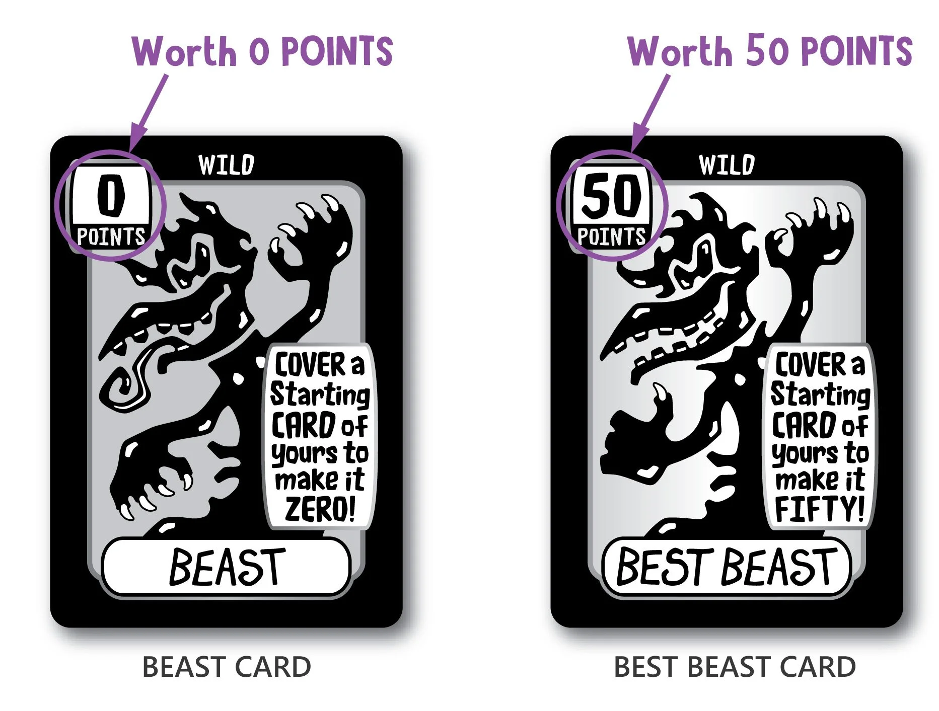 NOTE: BEAST cards are ultimately good cards to pick because even though they turn potential points to zero, they also help a player get that much closer to winning the round!